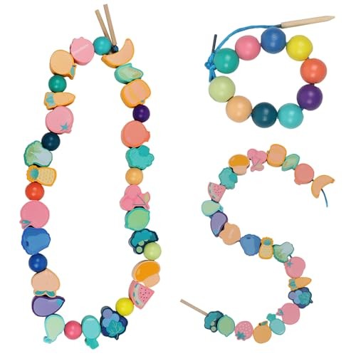 TRUEIN 33 Jouets de Filetage en Bois, Perles de Laçage