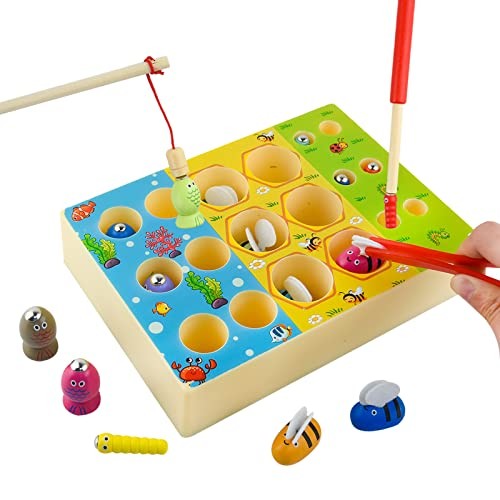 Lre Co. 3 en 1 Jeu de pêche en Bois, Jouet Montessori 3 Ans